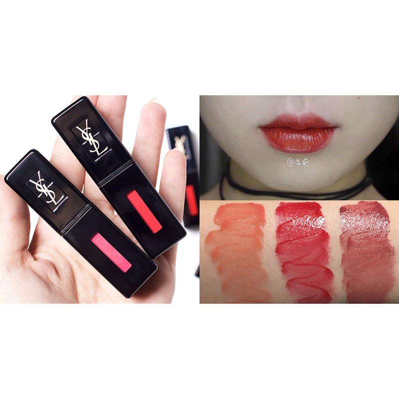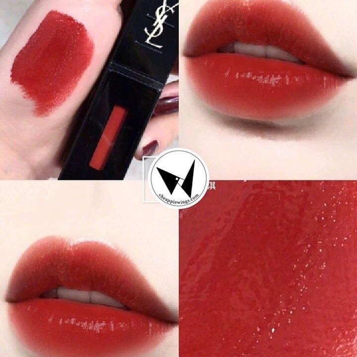 Son ysl 416 chili màu đỏ gạch với dòng son tint bán lì với chất son tuy mỏng nhưng độ lên màu được cải thiện hơn dòng glossy stain rất nhìu và cùng tinh chất dưỡng môi quả bơ ngọt lịm tuy là son tint nhưng độ bền màu cực ổn vì lớp finish rất tiệp môi.