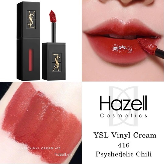 416 spydechelic chili đỏ đất pha nâu. It is vibrant and shiny and spell fall. Son ysl 416 màu đỏ gạch vinyl cream lip stain son ysl 416. Yves saint laurent ysl vinyl cream lip stain là dòng son kem cao cấp với chất son thuộc dạng bán lì mang lại vẻ đẹp thời thượng giàu dưỡng ẩm và làm căn đầy đôi môi cho những cô nàng yêu thích một bờ môi gợi cảm.